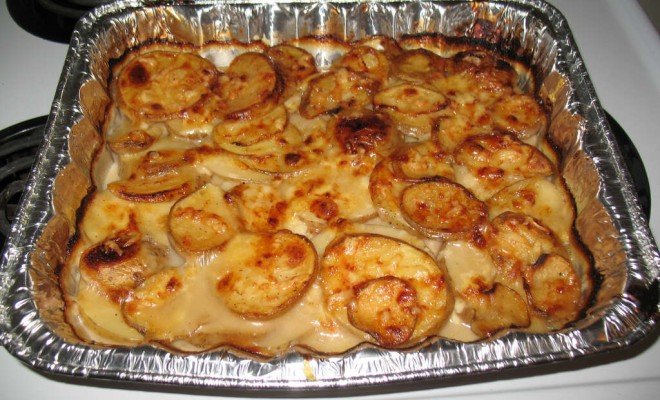 - Potom dodate još jedan sloj krompira, drugu trećinu ukupne količine krompira.